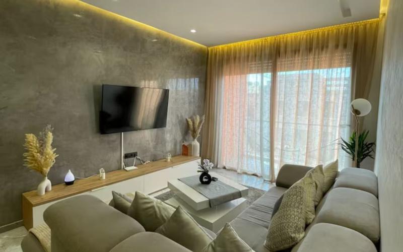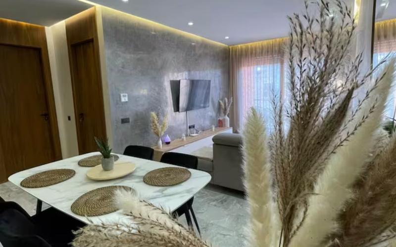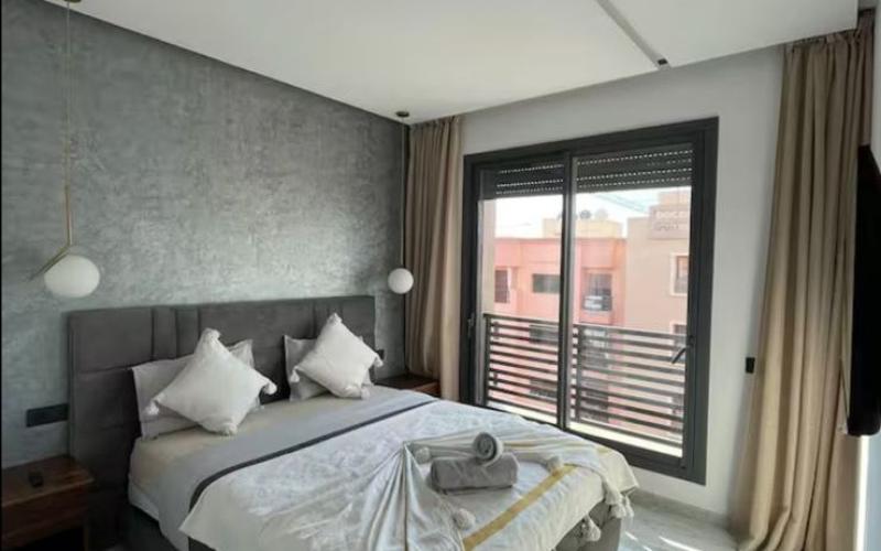 Bienvenue dans cet appartement de 43 m², idéal pour un séjour relaxant à Marrakech, situé au cinquième étage d’un immeuble moderne avec ascenseur, dans le quartier animé de Geliez. Ce logement confortable comprend une chambre cosy, un salon accueillant pour vos moments de détente, ainsi qu'une cuisine entièrement équipée pour préparer vos repas. La salle de bain est bien agencée, offrant tout le confort nécessaire.Profitez d’une agréable terrasse pour savourer vos petits-déjeuners en plein air ou simplement pour admirer la vue sur les environs. L'appartement est également doté d'un garage pour stationner votre véhicule en toute sécurité. Le bâtiment est surveillé par un gardien, et un syndic professionnel assure la bonne gestion de la copropriété, vous garantissant tranquillité d'esprit durant votre séjour.Idéalement situé à proximité de restaurants, boutiques et attractions touristiques, cet appartement est le point de départ parfait pour explorer Marrakech. Que vous soyez en quête de découvertes culturelles ou de moments de détente, cet espace est conçu pour rendre votre séjour inoubliable. Ne ratez pas cette opportunité de vivre une expérience mémorab Prix de location : 900dh le dans la belle ville de Marrakech !Prix de location : 900dh/jour Référencee agence :ALC-287