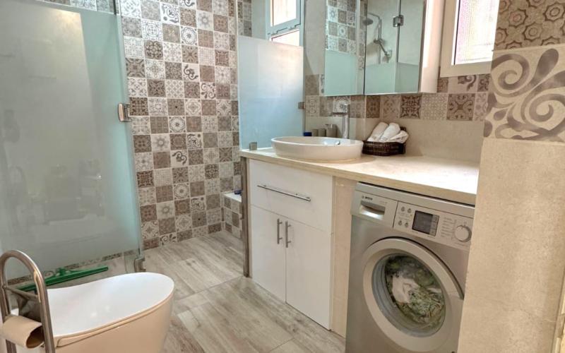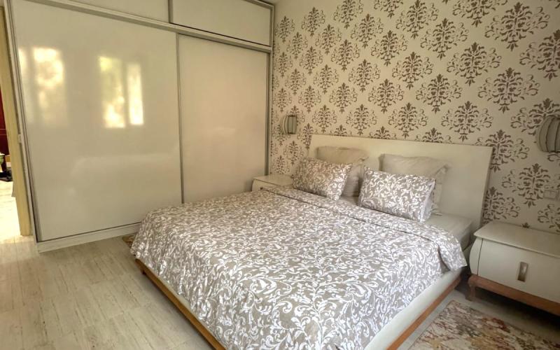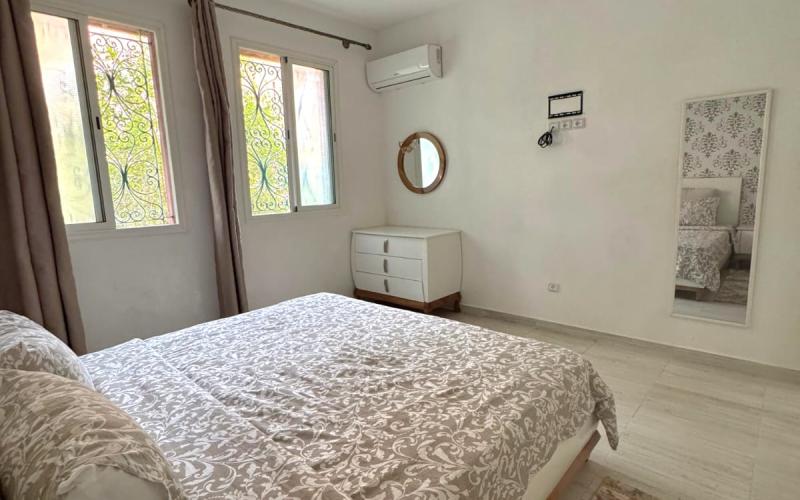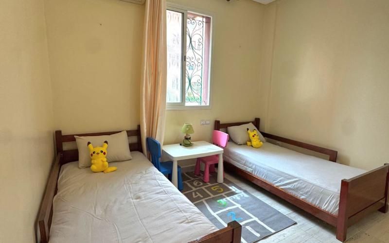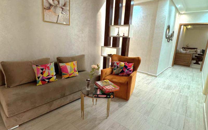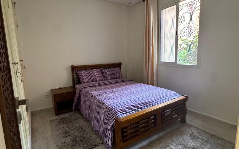 À louer en longue durée, un spacieux appartement meublé de 113 m², situé au rez-de-chaussée d’une résidence calme et sécurisée dans le quartier résidentiel de Mabrouka à Marrakech. Ce bien, en excellent état général, est soigneusement aménagé et entièrement climatisé pour offrir un confort optimal tout au long de l’année. Il se compose de trois chambres bien agencées, idéales pour une famille ou pour recevoir, d’un salon lumineux à la décoration sobre et élégante, d’une salle de bain fonctionnelle et d’une cuisine indépendante entièrement équipée.L’appartement se trouve dans une résidence bien entretenue, disposant d’un ascenseur, d’un gardien ainsi que d’un syndic actif, assurant un cadre de vie serein et organisé. Le mobilier est en bon état, choisi avec goût pour allier praticité et esthétisme. L’ensemble offre une ambiance chaleureuse, propice à l’installation immédiate, sans travaux ni aménagements supplémentaires à prévoir. Une opportunité idéale pour celles et ceux qui recherchent un logement meublé de qualité, dans un environnement résidentiel paisible.Prix location : 8000 dh/mois Référence Agence : ALLM-1025