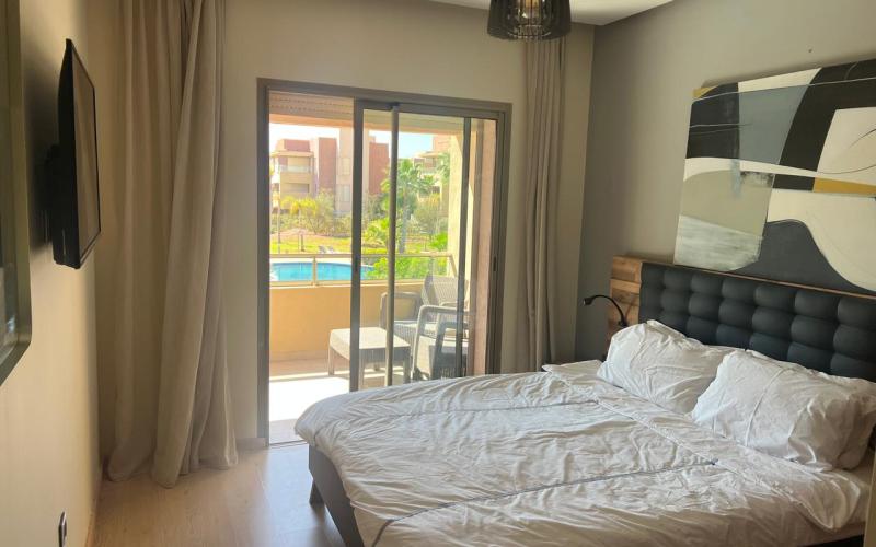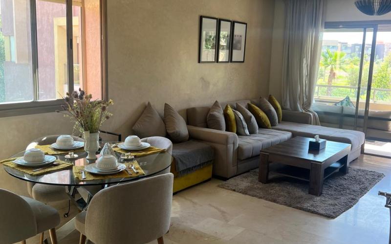 Découvrez ce magnifique appartement meublé de 74 m² situé au 1er étage d'une résidence sécurisée et bien entretenue à Prestigia, Marrakech. Offrant deux chambres lumineuses, un salon confortable, une salle de bain moderne et une cuisine entièrement équipée, ce bien est idéal pour un cadre de vie paisible et pratique. L’appartement est entièrement climatisé, titré, et se trouve en très bon état, prêt à accueillir ses nouveaux locataires.Profitez également de deux agréables terrasses donnant sur un jardin verdoyant, parfaites pour vos moments de détente. La résidence dispose d’une piscine commune, d’un jardin entretenu, d’un gardien et d’un service de syndic. Un cadre de vie calme, sécurisé et verdoyant, à proximité des commodités et du golf de Prestigia. Idéal pour une location longue durée alliant confort, sérénité et qualité de vie à Marrakech.Prix location : 13 500 dh/mois Référence Agence : ALLM-1033