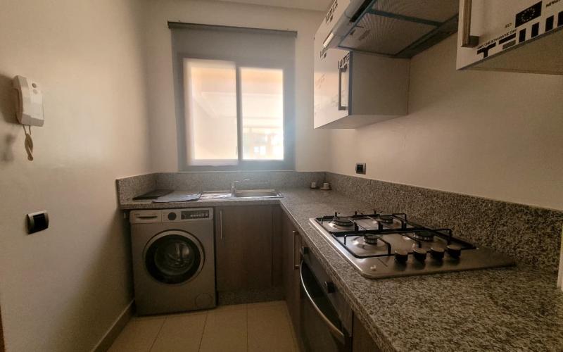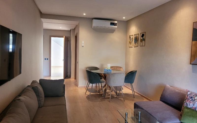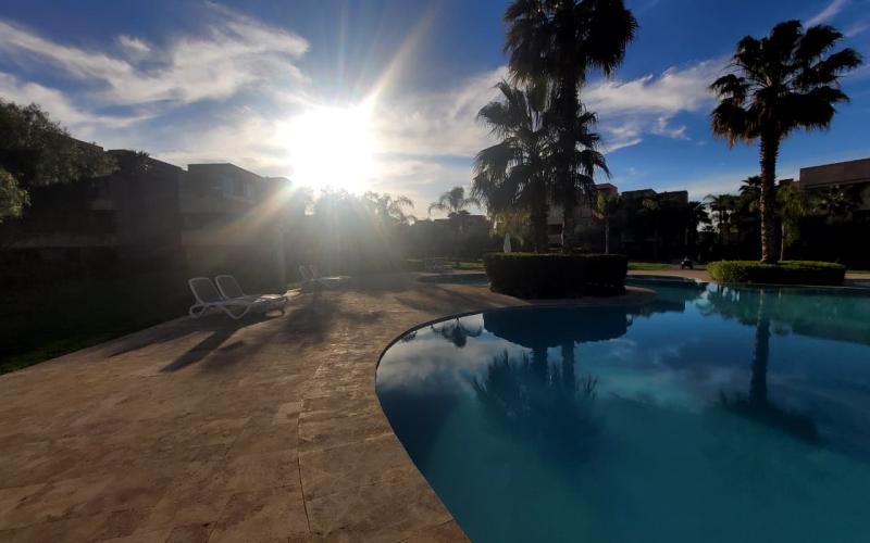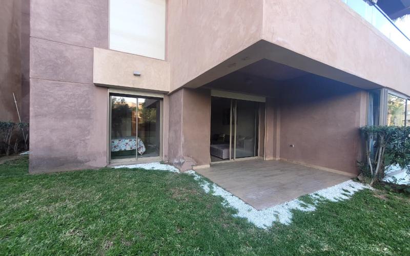 Situé au cœur du prestigieux quartier de Prestigia Marrakech, dans une résidence de standing sécurisée 24h/24, calme et parfaitement entretenue, ce magnifique appartement meublé en rez-de-chaussée offre un cadre de vie alliant confort, élégance et sérénité.D’une superficie de 78 m², ce bien lumineux et harmonieusement agencé se compose de deux chambres confortables, dont une suite parentale avec salle de bain moderne, d’un salon spacieux et chaleureux idéal pour recevoir ou se détendre, d’une cuisine entièrement équipée à la fois fonctionnelle et contemporaine, ainsi que d’un WC invités indépendant. L’appartement bénéficie également d’un superbe jardin privatif de 30 m², véritable prolongement de l’espace de vie, parfait pour profiter des beaux jours en toute intimité. La résidence dispose d’un ascenseur, d’une piscine collective et d’espaces verts soigneusement aménagés.Entièrement climatisé et décoré avec goût, ce bien est prêt à vivre. Il profite d’une belle luminosité naturelle et d’une agréable ouverture sur les jardins et la piscine, créant une atmosphère paisible et raffinée.Son emplacement stratégique au sein de Prestigia Marrakech permet de bénéficier d’un environnement privilégié, à proximité immédiate des commerces, écoles, transports et des principales zones touristiques de la ville. Proposé uniquement en location longue durée, cet appartement représente une opportunité rare pour une clientèle exigeante à la recherche d’un bien clé en main dans l’un des quartiers les plus recherchés de Marrakech. Je reste à votre disposition pour toute information complémentaire ou pour organiser une visite.