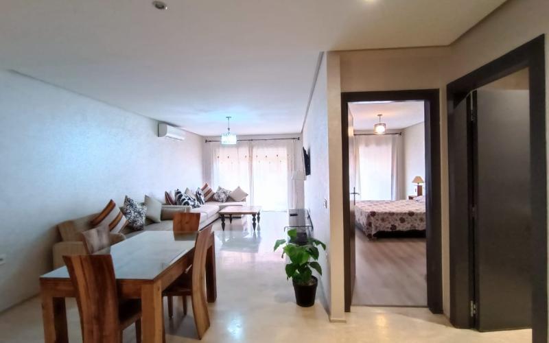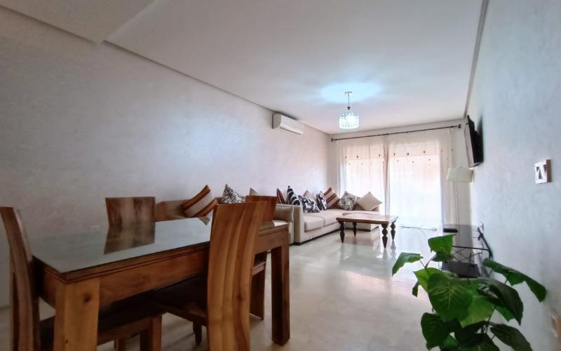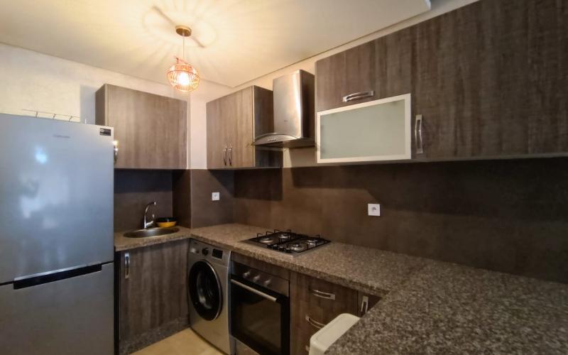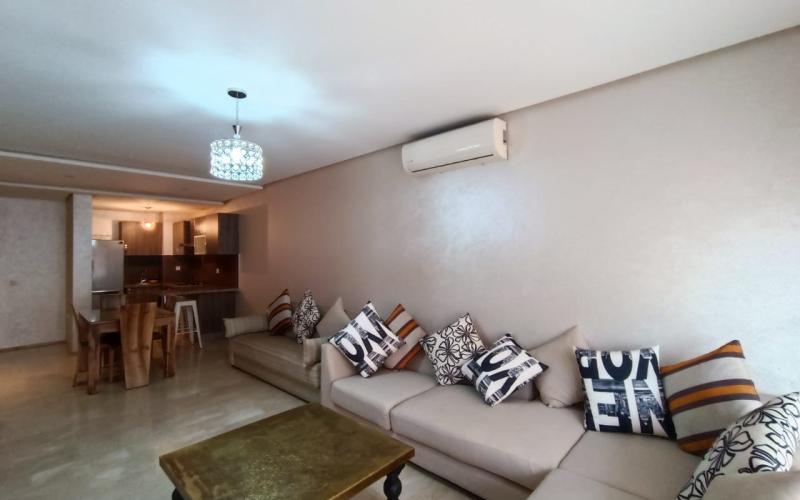 Dans une belle résidence au cœur de Gueliz, proche a toutes commodités, et à 10min du Mall Carré éden, votre agence Promo Immo Marrakech vous propose cet superbe appartement luxueusement meublé au 3ème étage, d’une surface de 70m² terrain dont 63m² habitable +07m² terrasse, Il se compose d’une chambre confortable avec placard, salon meublé avec goût avec accès sur la terrasse, cuisine bien équipée, salle de bain moderne Appartement avec climatisation centralisé réversible, ainsi que la résidence vous offre une belle piscine couvertee
