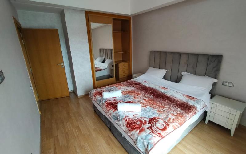 Un bel appartement est destiné pour la location meublé situé pas loin de Amoud, proche des commerces dans un beau immeuble au 3ème étage avec Ascenseur, sécurisée 24h/24h, avec un syndic professionnel, avec une place parking sous sol, il se compose de deux chambres, deux salles de bains , un salon spacieux et lumineux, cuisine et un balcon en U Ne rater pas de nous contacter !
