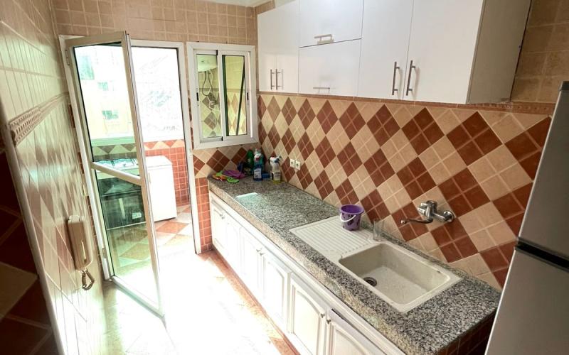 À louer en longue durée, bel appartement meublé 3 pièces de 78 m² à Guéliz, Marrakech, situé au 3ᵉ étage d’une résidence sécurisée avec ascenseur fonctionnel pour trois personnes. Ce logement lumineux et climatisé, au style contemporain, est idéal pour une famille ou un couple. Il se compose de 2 chambres meublées confortables, d’un salon spacieux et accueillant, d’une cuisine équipée, d’une salle de bain fonctionnelle, d’une buanderie pratique et d’une terrasse avec vis-à-vis offrant une belle vue.L’appartement bénéficie d’un environnement calme et sécurisé, proche de toutes les commodités essentielles : commerces, écoles, restaurants et transports.Cette location longue durée inclut des prestations pratiques : ascenseur fonctionnel, résidence bien entretenue, climatisation intégrale, offrant confort et sécurité au quotidien.Points forts : meublé et prêt à vivre, quartier calme et sécurisé, terrasse avec vue, emplacement stratégique au cœur de Guéliz, proximité de toutes les commodités.Prix de location : 6 500 DH par mois, (négociable ) et frais de syndic inclus. Une excellente opportunité pour ceux qui recherchent un logement de qualité dans un quartier prisé de Marrakech.