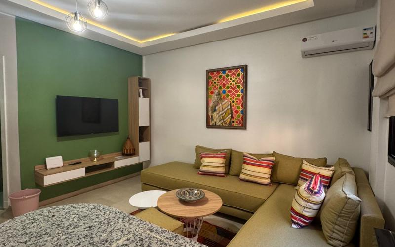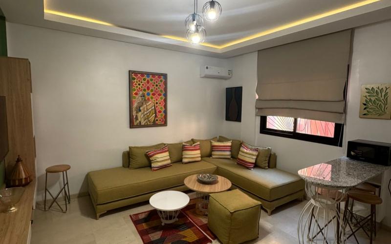 À louer en longue durée, un appartement meublé, titré et neuf, situé au 2ᵉ étage d'une résidence haut standing à Guéliz – Marrakech. Avec une surface de 50 m², il se compose d’une chambre confortable, d’un salon moderne, d’une cuisine entièrement équipée et d’une salle de bain. Le logement est climatisé, décoré avec goût, et offre un cadre de vie agréable dans un environnement résidentiel calme.La résidence est sécurisée et dispose de toutes les commodités : ascenseur, gardien, syndic professionnel, ainsi qu’un garage au sous-sol. Idéal pour une personne seule ou un couple à la recherche de confort et de praticité en plein cœur de Marrakech.Prix de location :7 000 DH/mois Réf agence : ALLM-62