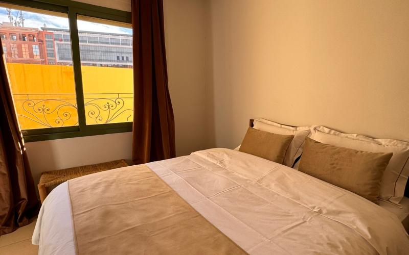 Nouvelle opportunité de location longue durée !Cet appartement est situé au 5ᵉ étage d’une résidence calme et sécurisée avec ascenseur. Il est en excellent état et bénéficie d’un emplacement stratégique au cœur de Guéliz.L’appartement est entièrement meublé avec des meubles neufs de haute qualité. Il se compose de deux chambres spacieuses avec placards, d’une cuisine entièrement équipée, d’un salon spacieux et climatisé au style marocain moderne avec des couleurs élégantes, ainsi que d’une salle de bain moderne.Une excellente opportunité de logement dans un emplacement privilégié, proche de toutes les commodités.La résidence offre :· Ascenseur· Syndic professionnel · Sécurité et gardiennage 24h/24.