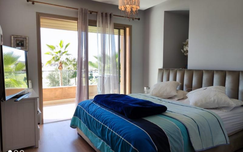 Votre Agence Promo Immo Marrakech vous propose cet appartement de charme dans une résidence golfique, calme jour comme nuit, avec une grande piscine ensoleillé pour profiter sous le soleil de la ville rouge, plus un beau espace vert , l’appartement entièrement climatisé , avec une surface 120m² au 2ème étage, il se compose de 2 chambres confortables dont 1 suite parentale accès sur la terrasse avec une vue panoramique , salon de prestige avec cheminée qui donne sur une très belle terrasse vue sur golf, cuisine fermé bien équipée avec buanderie, Coin à manger, 2ème salle de bain +WC, plus un garage sous-sol L’appartement moderne, bien décoré, c’est vote occasion pour avoir une vie très calme Résidence avec : Ascenseur, Sécurisé 24h/24, Syndic Professionnel