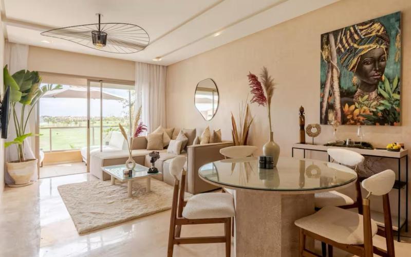 À vendre, un superbe appartement meublé et titré de 77 m², situé dans le prestigieux complexe résidentiel Prestigia Agate à Marrakech. Implanté au cœur d’une résidence haut standing sécurisée, cet appartement lumineux et entièrement climatisé offre un cadre de vie alliant confort, modernité et élégance. Il se compose de 2 chambres spacieuses, d’un salon contemporain, de 2 salles de bain, ainsi que d’une cuisine équipée. Deux balcons viennent compléter ce bien, apportant une belle luminosité et une agréable ouverture sur l’extérieur. Le projet Prestigia Agate bénéficie d’un emplacement stratégique à proximité de l’avenue Mohammed VI, du golf, de l’aéroport Menara et de nombreuses commodités. La résidence met à disposition une piscine collective, des espaces verts soignés et un environnement sécurisé, idéal pour une vie paisible au sein de l’un des quartiers les plus prisés de Marrakech. L’appartement est en excellent état, prêt à être habité, parfait aussi bien pour une résidence principale que pour un investissement locatif de qualité. Prix Vente :2 400 000 dh Réf : AVM-53