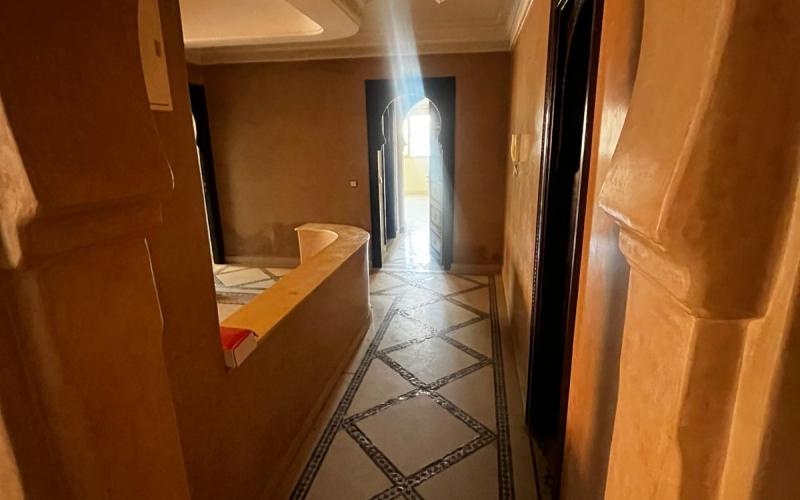 Un  bel appartement  dans une résidence haut standing et bien sécurisée ,d’une  superficie de 122m², vide, il se compose de trois  chambres, un grand salon avec un cheminé,  deux  salles de bains, une cuisine, deux terrasses et une place parking titrée.L’appartement est bien placé à Avenue Hassan2 à  guéliz pas loin de la gare et Avenue Mohamed 6 entouré des  restaurants ,cafés et pleins de commerces. Ne Ratez pas cette occasion soit pour l’habitation ou investissent