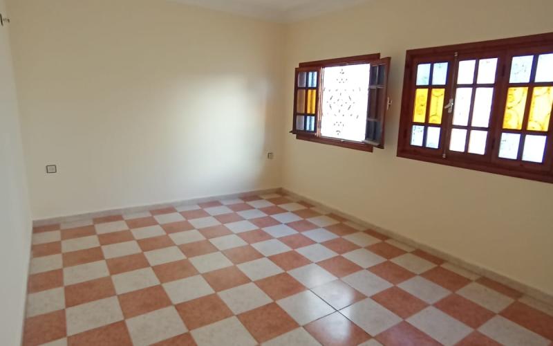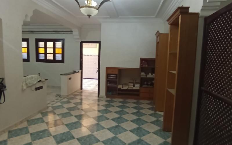 Maison vide titrée à louer, d’une superficie de 170 m² au sol, construite sur trois niveaux (R+2), située dans le quartier Sidi Mbarek à Marrakech, à proximité immédiate du marché sur la rue principale, permettant de faire les courses à pied sans besoin de déplacement. La maison se compose de 6 chambres, 3 salons spacieux, 3 cuisines, 3 salles de bain, 2 WC séparés, 2 séjours, d’une terrasse ainsi que d’une cour ouverte assurant une bonne aération et une luminosité naturelle. Le bien est propre, très bien entretenu, avec une peinture en bon état, et est prêt à être occupé immédiatement. Grâce à sa configuration et à son emplacement stratégique, cette maison convient parfaitement à une grande famille ou à un usage résidentiel à Marrakech.