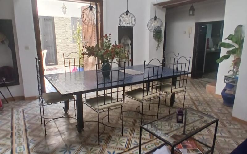 Situé au cœur de la Médina à Marrakech, ce Riad typiquement marocain, à deux pas de la place Jamâa El-Fna et des principaux monuments est composé comme suit : Un patio ombragé, fleuri avec un salle à manger et un salon de thé. Une cuisine bien équipée, Toilette invités, 5 chambres avec salle de bain et toilette, Une jolie terrasse avec pergola, où vous pouvez profiter du soleille, vous surplombez les trésors de Marrakech, découvrez le minaret de la Koutoubia et devinez les montagnes de l’Atlas.