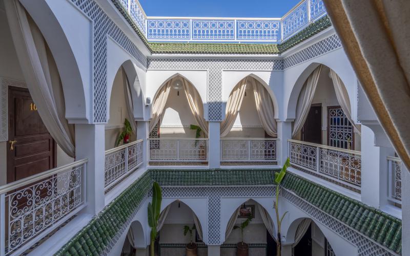 À vendre : magnifique riad exploité en maison d’hôtes, idéalement situé dans le quartier authentique de Ben Saleh, au cœur de la médina de Marrakech. Facile d’accès en voiture et sans vis-à-vis, ce bien de charme se trouve à seulement 700 mètres de la célèbre place Jamaâ El Fna. Offrant une vue splendide sur la médina, il allie emplacement stratégique, tranquillité et potentiel touristique.Le rez-de-chaussée se compose d’une réception accueillante avec un coin salon pour se détendre, une salle à manger, une cuisine fonctionnelle ainsi qu’un agréable espace piscine. À l’étage, vous trouverez 10 suites spacieuses, chacune équipée de sa propre salle de bain, offrant confort et intimité aux hôtes.Le riad dispose également de deux terrasses. La première comprend un espace repas, un coin détente et une piscine en terrasse. La seconde terrasse offre une vue panoramique sur la médina et un large horizon incluant Jamaâ El Fna. Ce bien rare, mêlant charme traditionnel et équipements modernes, est prêt à poursuivre son activité de maison d’hôtes ou à être transformé en résidence privée d’exception.