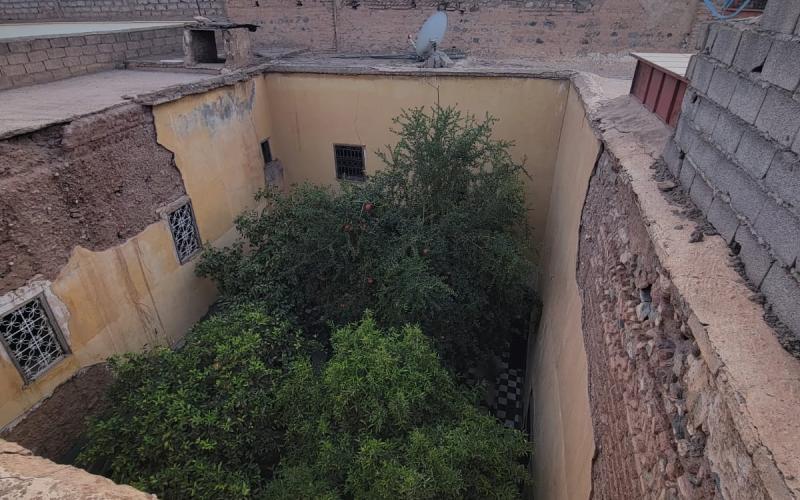 Ce Riad marocain traditionnel, d'environ 90 m² de terrain au sol habitable, est mis en vente avec une autorisation de construction pour un palais d’hôtes. Des travaux de gros œuvre sont à prévoir pour les deux bâtiments annexes.La demeure s’organise autour de nombreuses colonnes, ouvertes sur un vieux patio, avec des puits de lumière et un jardin luxuriant rempli d'arbres. La cuisine est ouverte sur une cour qui offre lumière naturelle, ventilation et une vue agréable. Des travaux artisanaux seront également nécessaires lors de la rénovation pour préserver l'authenticité du lieu.Ce lieu conjugue plusieurs époques de l’histoire marocaine et présente de grands volumes, attirant ainsi les amateurs de Marrakech et les investisseurs en quête de caractère. PATIO : Plusieurs colonnes, étage semi-fini.