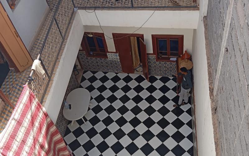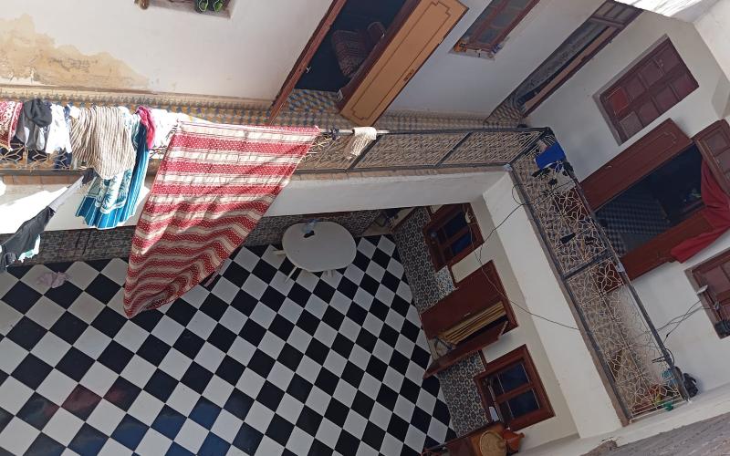Riad Malkia à vendre dans le quartier prisé de la Kasbah à Marrakech, à proximité immédiate de la Médina et du centre-ville. Ce riad traditionnel, d’une surface de 120 m², s’organise autour d’un lumineux patio central avec ouverture en hauteur, offrant une belle clarté naturelle. Le sol en damier noir et blanc apporte une touche élégante et authentique, tandis que les murs sont habillés de zelliges marocains traditionnels mettant en valeur le charme architectural du lieu. La galerie à l’étage avec rambarde en fer forgé dessert les différentes pièces et offre une vue plongeante sur le patio. Le bien comprend 5 chambres, 1 salon, 1 cuisine et 2 salles de bain. Les menuiseries en bois et les finitions artisanales renforcent le caractère typiquement marocain de la propriété. Une terrasse sur le toit complète ce bien, idéale pour aménager un espace détente et profiter du climat agréable de Marrakech. Riad avec Malkia (non titré). Pour plus d’informations ou pour organiser une visite, merci de nous contacter.