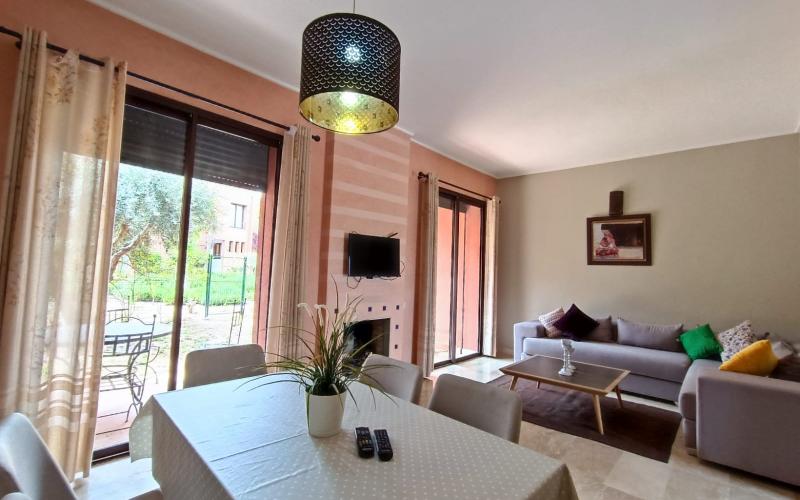 Promo immo vous propose cette agréable villa avec piscine située dans les jardins d’Atlas une des plus belles résidence de la ville ocre, notre superbe villa destinée surtout aux chercheurs dont leur mode de vie contemporaine, notre splendide villa moderne de 200 m² en totalité dont 144 m² est habitable est mise en location avec 3 rayonnantes chambres à double lit bien meublé et avec deux salles de bain, ainsi Deux salons spacieux moderne, avec une petite table a manger donnant sur l’extérieur du villa avec une réalisation de décor répondant a tous les gouts ,une cuisine bien aménagée a plein pied ,une piscine magique permettant a ses jouissant une vue incomparable en plein nuit ,entouré d’un espace jardinage verdoyant bien rénové.