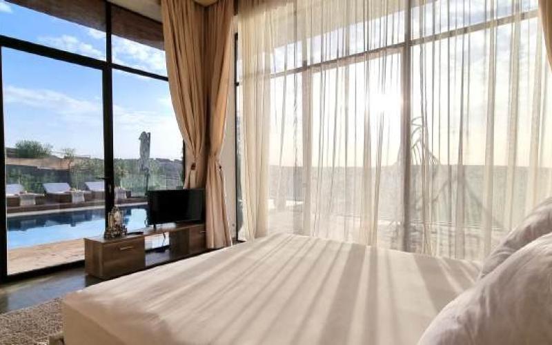 À vendre : Villa d'exception avec vue panoramique sur la valléeSituée dans un environnement exceptionnel, cette somptueuse villa offre une vue imprenable sur la vallée, un panorama à 380 degrés qui saura vous éblouir. Nichée sur un terrain spacieux de 6000 m², cette propriété de luxe de 300 m² vous invite à découvrir un cadre de vie unique, alliant confort, modernité et élégance. Un véritable havre de paix où chaque détail a été pensé pour offrir bien-être et sérénité à ses occupants.Dès l'entrée, vous serez séduit par le raffinement de cette villa. Elle se compose de cinq chambres luxueuses, chacune climatisée et équipée de grands lits doubles, offrant ainsi un confort optimal. Chaque chambre dispose d'un dressing spacieux, ainsi que d'un coffre-fort intégré pour assurer la sécurité de vos effets personnels. Les six salles de bains de la villa, modernes et spacieuses, ont été conçues avec des matériaux de qualité pour offrir une expérience agréable et fonctionnelle au quotidien.Le grand salon moderne, cœur de la villa, est baigné de lumière naturelle grâce à ses larges fenêtres, créant un espace de vie à la fois convivial et élégant. Il est idéal pour recevoir vos proches ou profiter de moments de détente en famille. La cuisine américaine entièrement aménagée, ouverte sur le jardin, constitue le lieu idéal pour concocter de délicieux repas tout en ayant la possibilité de contempler la vue splendide. Son design contemporain et son agencement fonctionnel vous offriront une expérience culinaire incomparable.La villa dispose de trois cheminées à bois, apportant chaleur et confort, tant dans le salon principal que dans certaines chambres, créant ainsi une atmosphère intime et cosy, parfaite pour les soirées d'hiver. De plus, un pavillon extérieur avec cheminée vous permettra de profiter de moments conviviaux en plein air, quelle que soit la saison.Pour les amateurs de sport et de bien-être, cette propriété dispose également d'une salle de sport entièrement équipée. Vous pourrez y maintenir votre forme physique dans un environnement privé et agréable, loin des foules des salles de sport traditionnelles.À l'extérieur, la propriété ne manque pas de charmes. La piscine à débordement de 90 m³ est l'un des points forts de cette villa. Elle offre une vue panoramique à couper le souffle sur la vallée, créant un espace de détente parfait, où vous pourrez vous rafraîchir tout en admirant les paysages environnants. Vous apprécierez également les vérandas et terrasses privées qui entourent la maison, offrant des espaces supplémentaires pour se détendre ou recevoir, en toute tranquillité.Le jardin est aménagé avec soin, et un puits équipé assure un approvisionnement en eau pour l'entretien de la propriété. Pour les amoureux des animaux, cette villa dispose de locaux spécialement conçus pour accueillir des animaux tels que des chevaux, des chameaux, ou même un poulailler. Cet espace permet d’offrir à vos compagnons un cadre de vie aussi agréable que le vôtre.La sécurité et la praticité sont également des priorités de cette propriété. Un parking principal permet d'accueillir plusieurs véhicules, tandis qu'un parking pour les invités est prévu pour vos convives. La présence d'un gardien sur place assure une surveillance constante, et des caméras de surveillance complètent ce dispositif pour garantir votre tranquillité d'esprit.Meublée avec goût et soin, cette villa est un véritable chef-d'œuvre d’architecture et de décoration. Chaque espace a été pensé pour offrir un cadre de vie harmonieux, où le luxe et la modernité se rencontrent avec la nature environnante.Que vous soyez à la recherche d'un lieu pour vivre au quotidien ou d'une résidence secondaire, cette propriété représente une opportunité rare sur le marché. Elle incarne l’alliance parfaite du confort, du luxe et de l’intimité dans un environnement paisible et sécurisé.Pour plus d’informations ou pour organiser une visite, n’hésitez pas à nous contacter dès aujourd’hui. Cette propriété d'exception n'attend plus que vous.