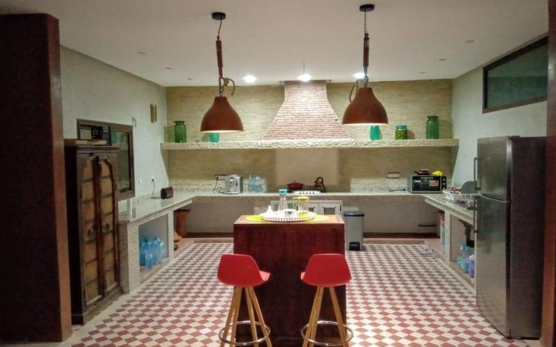À louer en longue durée, splendide villa meublée en très bon état, située sur la route d’Amizmiz – Marrakech, sur un vaste terrain d’1 hectare arboré de beaux oliviers et de diverses plantations. Un véritable havre de paix avec puits privé, idéal pour ceux qui recherchent tranquillité et nature à seulement quelques kilomètres de Marrakech. La villa dispose d’une surface habitable de 460 m², comprenant un grand jardin entretenu, une belle piscine privée pour se rafraîchir, ainsi qu’un garage.L’intérieur se compose de 4 suites spacieuses, 4 salles de bain, 2 salons lumineux dont un équipé d’une cheminée, et une cuisine américaine moderne et fonctionnelle. L’ensemble est entièrement meublé avec goût, prêt à accueillir ses futurs occupants dans un cadre chaleureux et confortable. Une propriété rare à découvrir pour une vie de qualité entre calme, espace et nature.Prix de location : 30 000 DH/Mois Réf agence: VLM-205