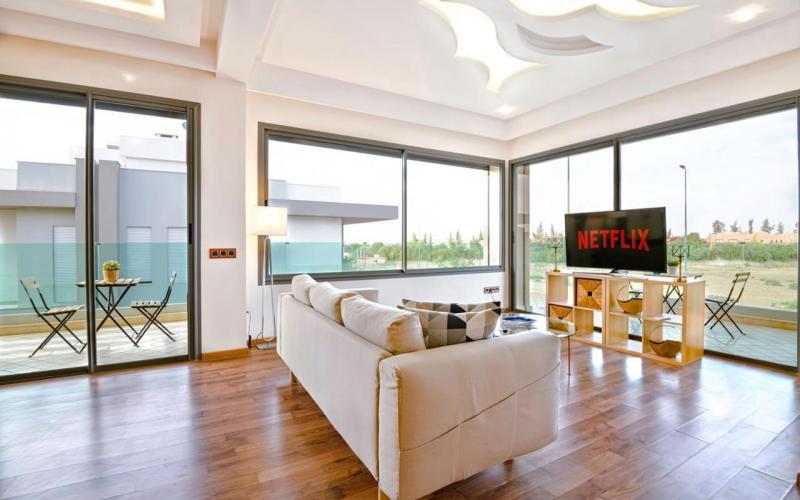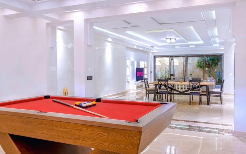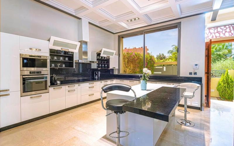 Villa haut standing à vendre à Agdal – Marrakech, construite sur un terrain de 570 m² avec une surface habitable de 680 m². Cette propriété spacieuse et lumineuse se compose de 3 chambres et 2 suites, d’un grand salon, de 5 salles de bains, de 2 cuisines bien aménagées et de 3 terrasses offrant de beaux espaces extérieurs. La villa dispose également d’une piscine, d’un garage, d’un jardin, et bénéficie de la présence d’un gardien et d’un syndic assurant sécurité et entretien.Entièrement meublée, titrée et en très bon état, cette villa se distingue par son confort moderne et sa climatisation intégrée. Édifiée sur R+1, elle offre des prestations de logement haut standing, idéales pour une résidence principale ou secondaire. Située dans un secteur calme et prisé d’Agdal, elle allie élégance, fonctionnalité et qualité de vie exceptionnelle au cœur de Marrakech.Prix de vente : 12 000 000 DH Réf Agence : VVM- 260
