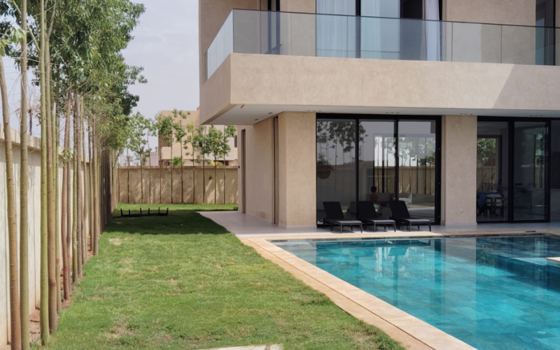 À vendre, villa meublée et titrée située dans le cadre calme et résidentiel de l’Atlas Golf Resort à Marrakech. Édifiée sur un terrain de 651 m², cette propriété offre une surface habitable de 390 m² bien répartie et lumineuse. Elle se compose de 5 chambres avec salle de bain et dressing , d’un salon spacieux, de salles de bain, ainsi que d’une cuisine moderne et entièrement équipée bien aménagée. avec une arrière cuisine ,Chaque espace est pensé pour offrir le confort et praticité dans un cadre de vie agréable.Cette propriété séduit par son atmosphère chaleureux ses finitions haut de gamme.La villa dispose également d’une terrasse idéale pour les moments de détente, d’un jardin privé verdoyant, d’une piscine, parfaite pour profiter des journées ensoleillées, et d’un garage. L’ensemble est proposé entièrement meublé, prêt à être habité immédiatement. Cette propriété représente une belle opportunité pour une résidence principale, secondaire ou un investissement dans un environnement paisible et sécurisé.Référence Agence : VVM-299 Prix vente : 6 900 000 DH