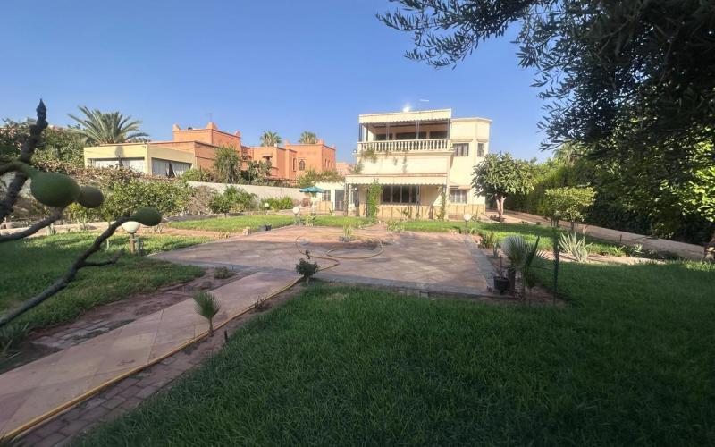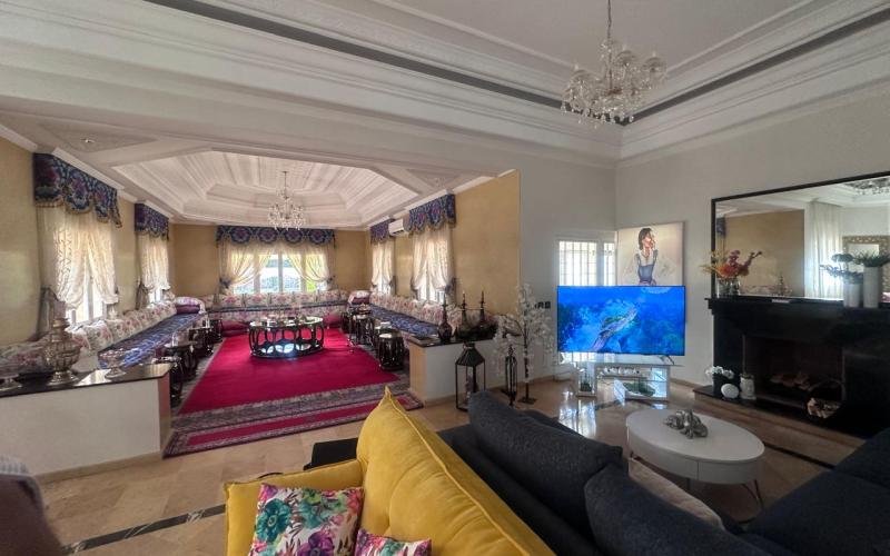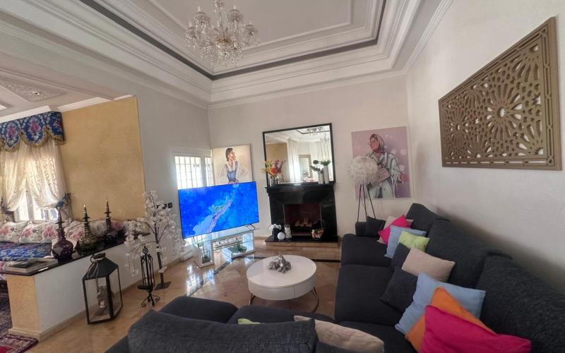 Une villa sublime meublé destiné à la vente, située dans un quartier résidentiel calme et sécurisé de Targa, cette villa titrée combine confort, volumes généreux et prestations de qualité. Construite sur un terrain de 984 m², elle offre 600 m² habitables soigneusement agencés. Dès l’entrée, un jardin intérieur en marbre, un espace vert et un garage pour 6 voitures annoncent le standing du lieu.Le rez-de-chaussée lumineux accueille une réception ouverte, des salons marocains et européens, un hammam beldi en marbre et deux cuisines. À l’étage, trois chambres, une suite parentale avec terrasse, deux balcons et une salle de bain commune composent l’espace nuit. Un salon indépendant au sous-sol ainsi qu’une terrasse avec vue dégagée complètent la propriété.La villa dispose d’un puits, d’un gardien, d’un ensoleillement optimal, et se distingue par son calme et son environnement sécurisé. Son garage de 6 places permet également l’organisation d’événements privés ou familiaux en toute discrétion. Vendue meublée, elle offre un fort potentiel locatif en location saisonnière (type Airbnb), grâce à sa situation privilégiée à Targa, l’un des quartiers les plus recherchés de Marrakech. Une opportunité rare, idéale pour y vivre, investir ou développer une activité événementielle ou touristique.Prix de vente : 9600000DH Référence Agence : VVM-314