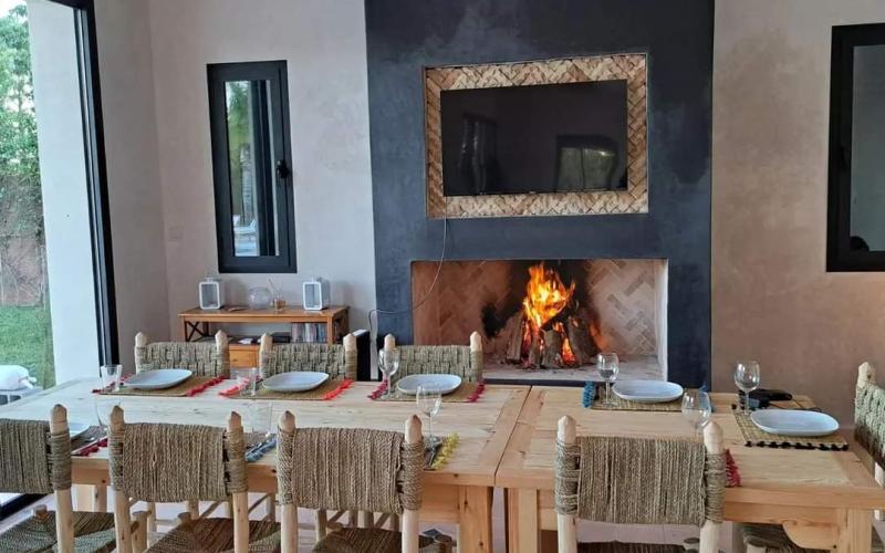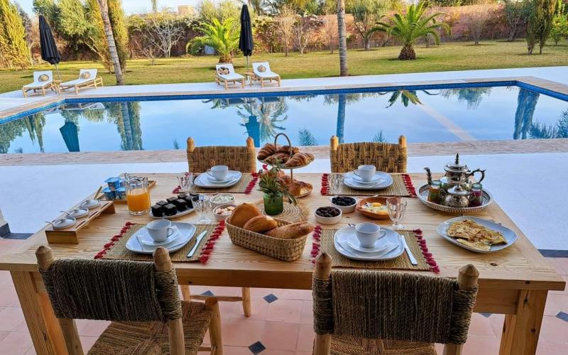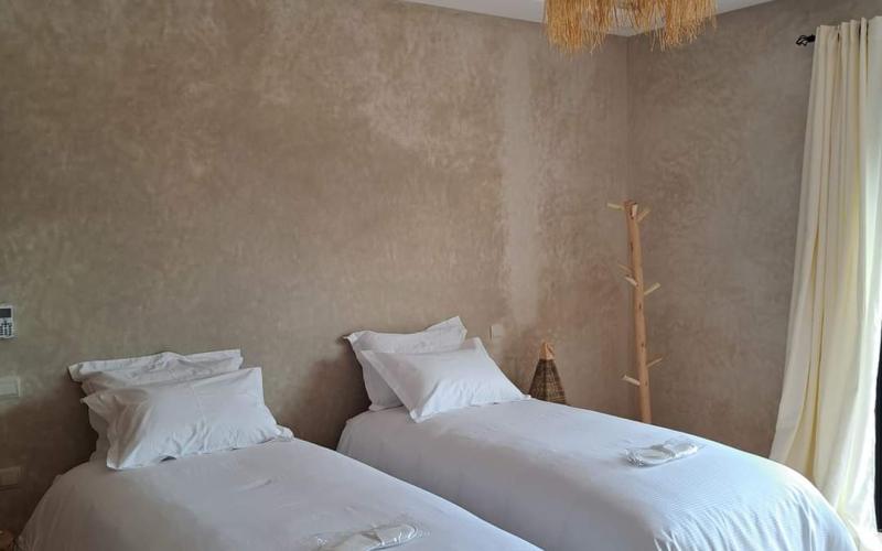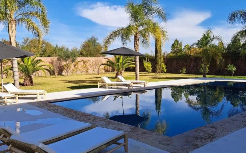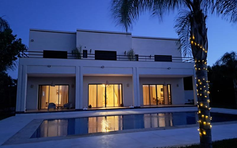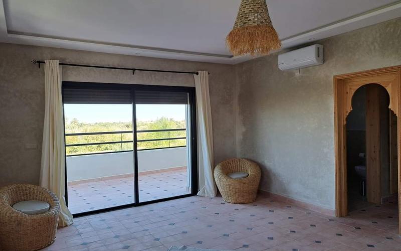 À vendre sur la Route de Ouarzazate – Marrakech, superbe villa neuve, meublée avec goût, titrée, et offrant des prestations de haut standing. Édifiée sur un vaste terrain de 2 530 m², elle développe une surface habitable de 580 m², comprenant 8 grandes chambres, 2 salons spacieux, 8 salles de bain avec WC, une cuisine moderne entièrement équipée, ainsi que 2 balcons avec vue dégagée. La villa est climatisée, lumineuse, et conçue pour offrir confort, luxe et fonctionnalité.À l’extérieur, profitez d’un jardin arboré, d’une grande piscine privée, d’un hammam traditionnel, d’un garage, et d’un logement pour gardien. Ce bien rare allie espace, confort et élégance dans un cadre résidentiel calme, à proximité de Marrakech. Idéal pour une résidence principale ou un projet d’investissement haut de gamme.Réf : AVV-317 Prix : 10 500 000 DH